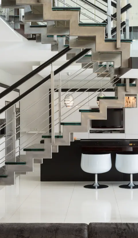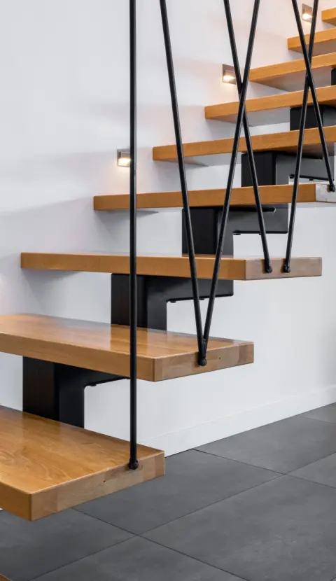 а также создаем лестницы с нуля, используя различные конструкции, такие как косоуры, тетивы, консольные, больцы, а также винтовые и маршевые лестницы. Мы гарантируем, что если вы обратитесь к нам, то получите лестницу вашей мечты, сделанную качественно и с любовью к своему делу.