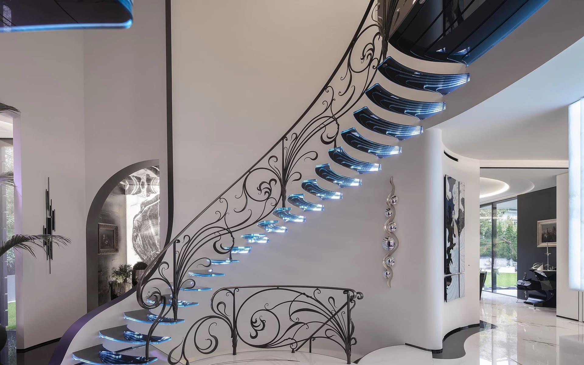 Мраморная лестница для загородного дома в КП «Жуковка»